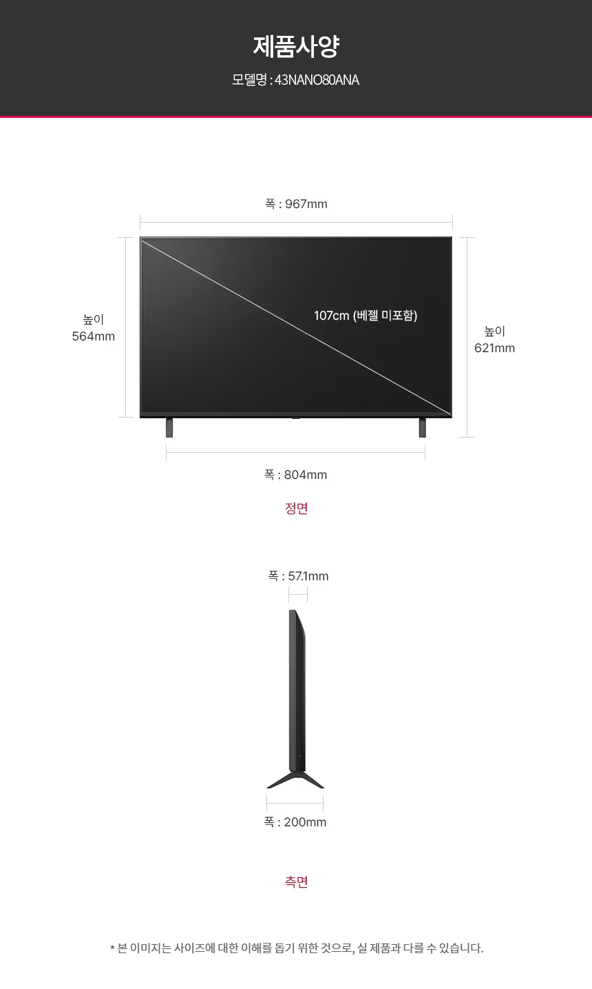 제품크기967 x 564 x 57.1 mm(스탠드제외)